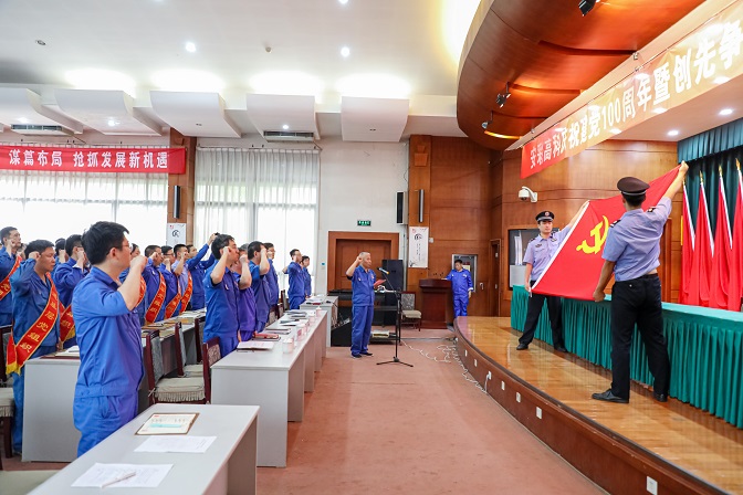 “我志愿加入中國共產黨,擁護黨的綱領,遵守黨的章程……”在何董的帶領下,公司新黨員面向鮮艷的黨旗莊嚴宣誓,與會黨員們也一同重溫了入黨誓詞。